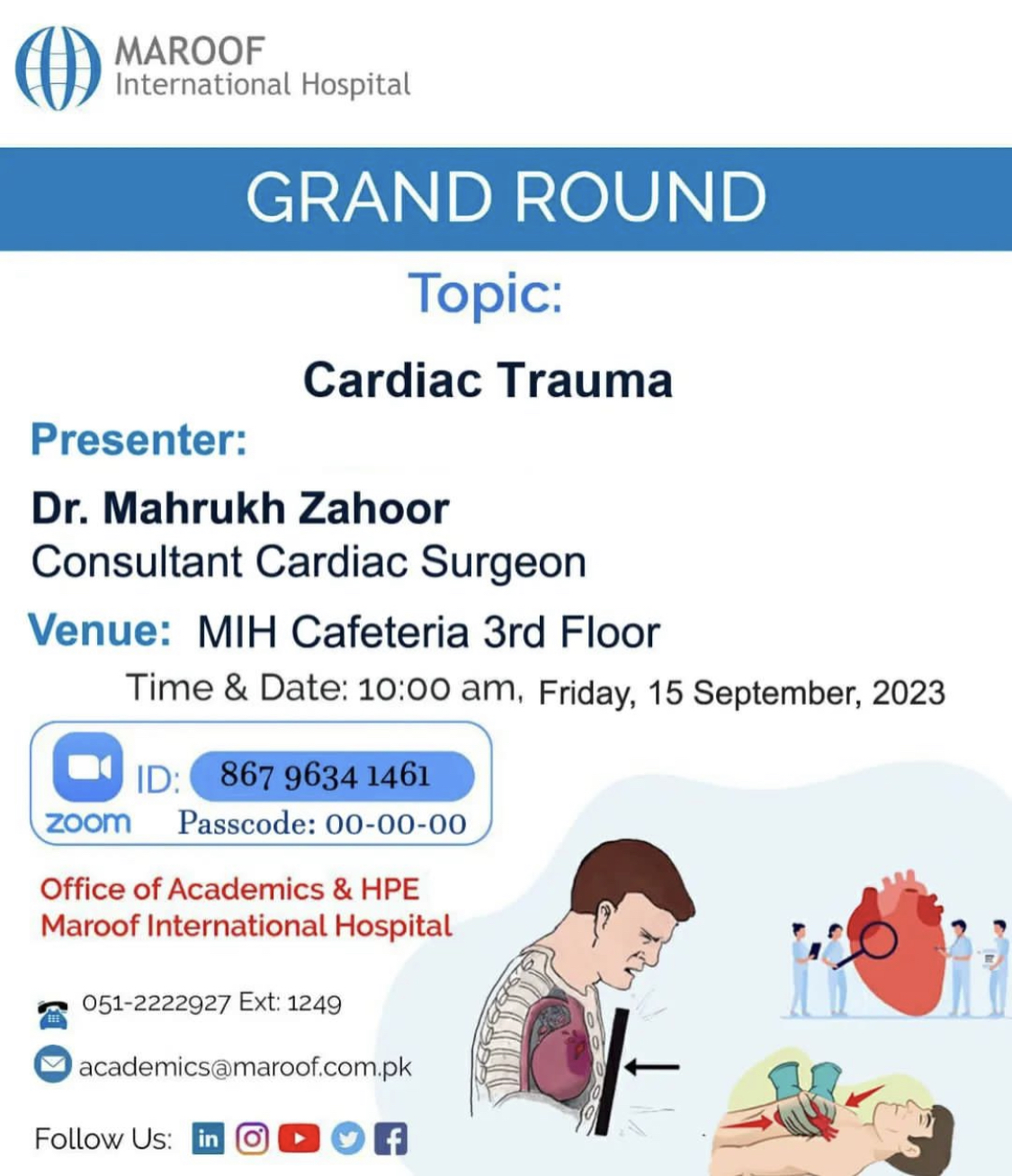 Elevate your cardiac knowledge at our Grand Round event, happening both in-person at MIH Cafeteria 3rd Floor and virtually via Zoom at 10:00 am on 15th of September, 2023.