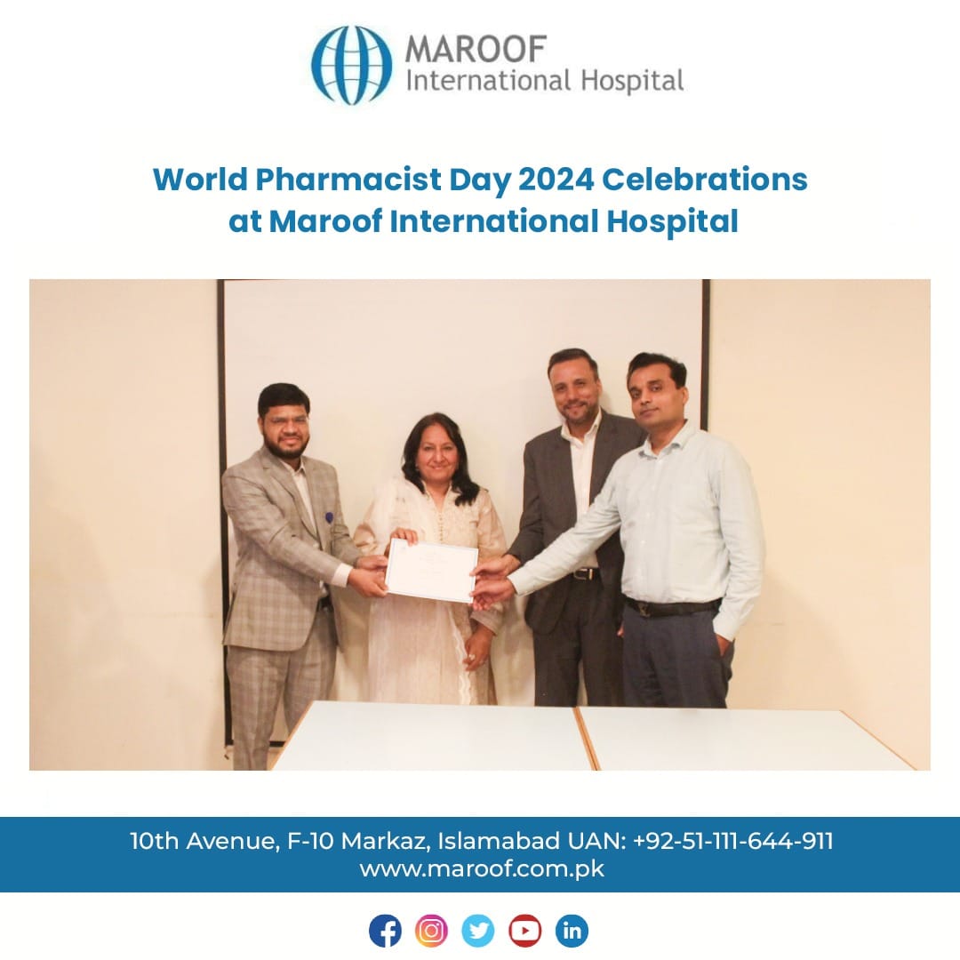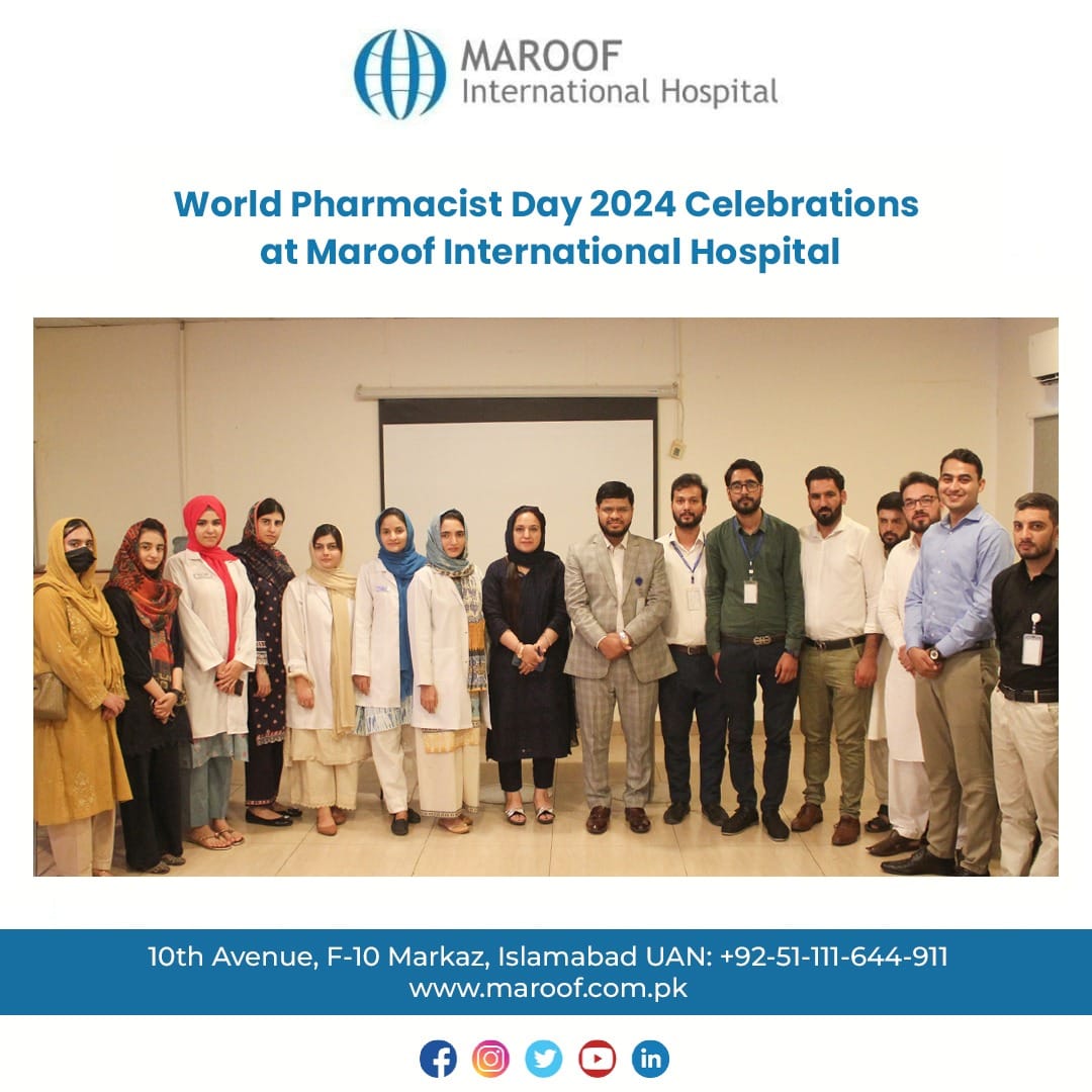 At Maroof International Hospital, we celebrated World Pharmacist Day by recognizing the incredible work of our pharmacists. These healthcare professionals play a vital role alongside doctors and nurses, making sure patients receive the right medications and care. Their expertise and dedication help improve patient health every day.